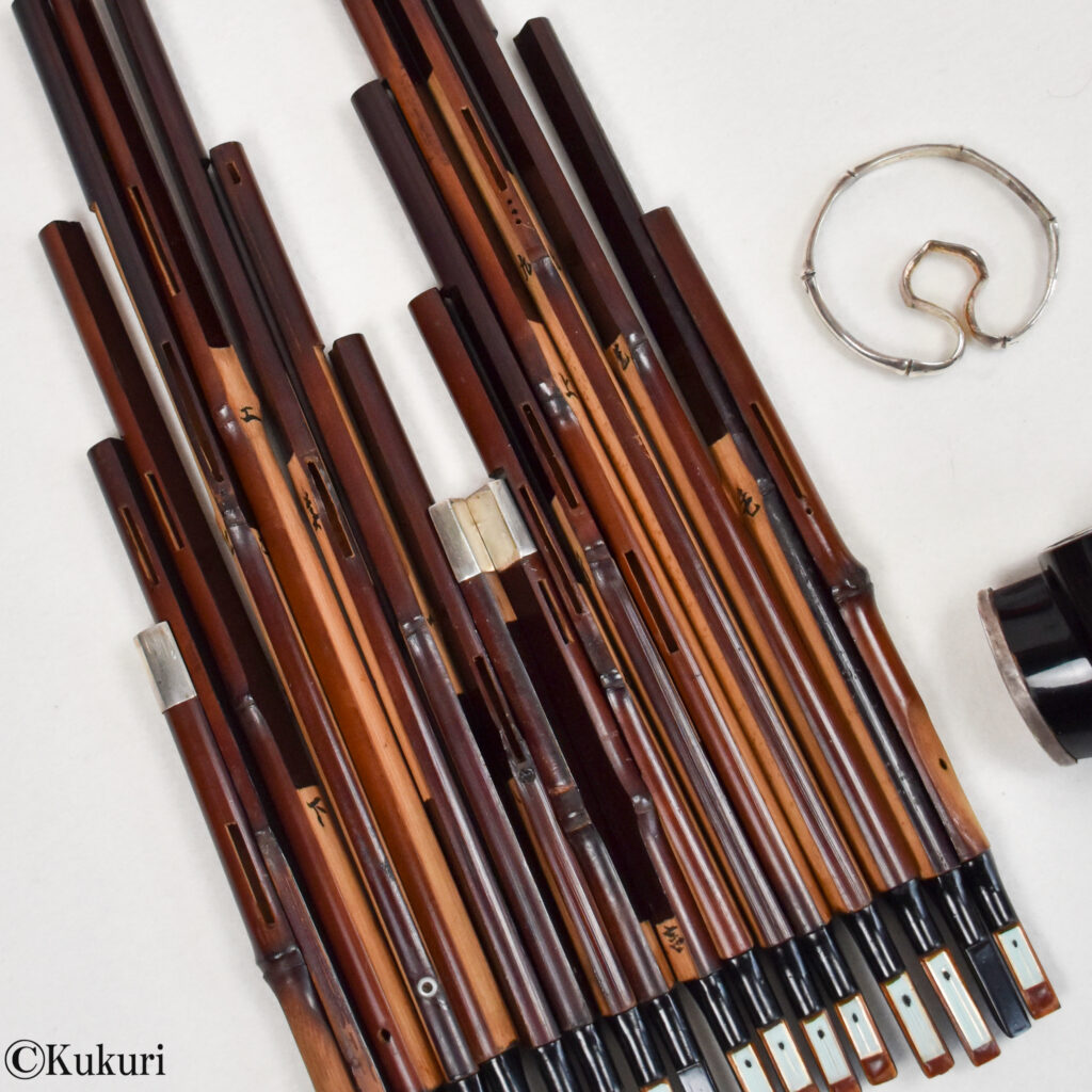 ※1 煤竹本管とは:何年も(場合によっては何十年も)囲炉裏などの煙で燻された竹を主材料に、プラスチックなどの樹脂材料を使わず製作された楽器