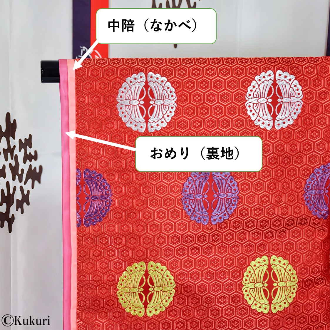 袿を仕立てる楽しみの1つに「色のコーディネート」があります。おめり(裏地)、中陪は襟元、袖口、裾などからほんの少ししか見えませんが、色使い次第で印象がガラッと変わる重要なパーツです。