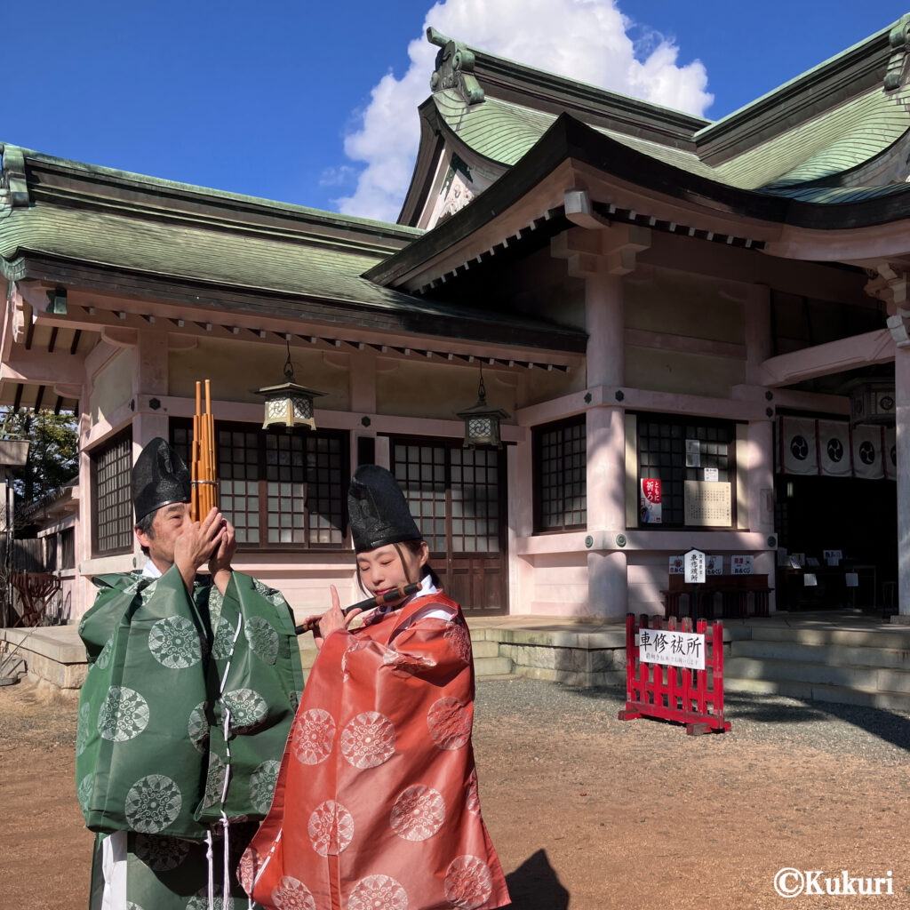 愛知県豊橋市に鎮座し、奈良・飛鳥時代の白鳳元年(672年)創建「羽田八幡宮」様よりご依頼を頂き、令和8年2月、結婚式の雅楽演奏を奉仕させていただきました。