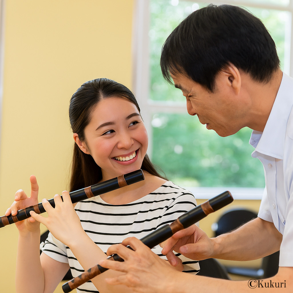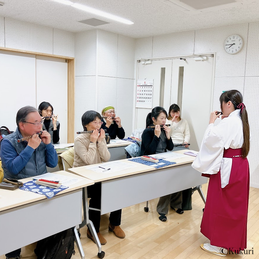 菊理では、目的やライフスタイルに合わせて選べる 3種類の雅楽レッスンをご用意しています。どのレッスンも未経験者さん大歓迎!楽器の持ち方や姿勢、楽譜の読み方や呼吸法など「基本のキ」から優しく指導します。